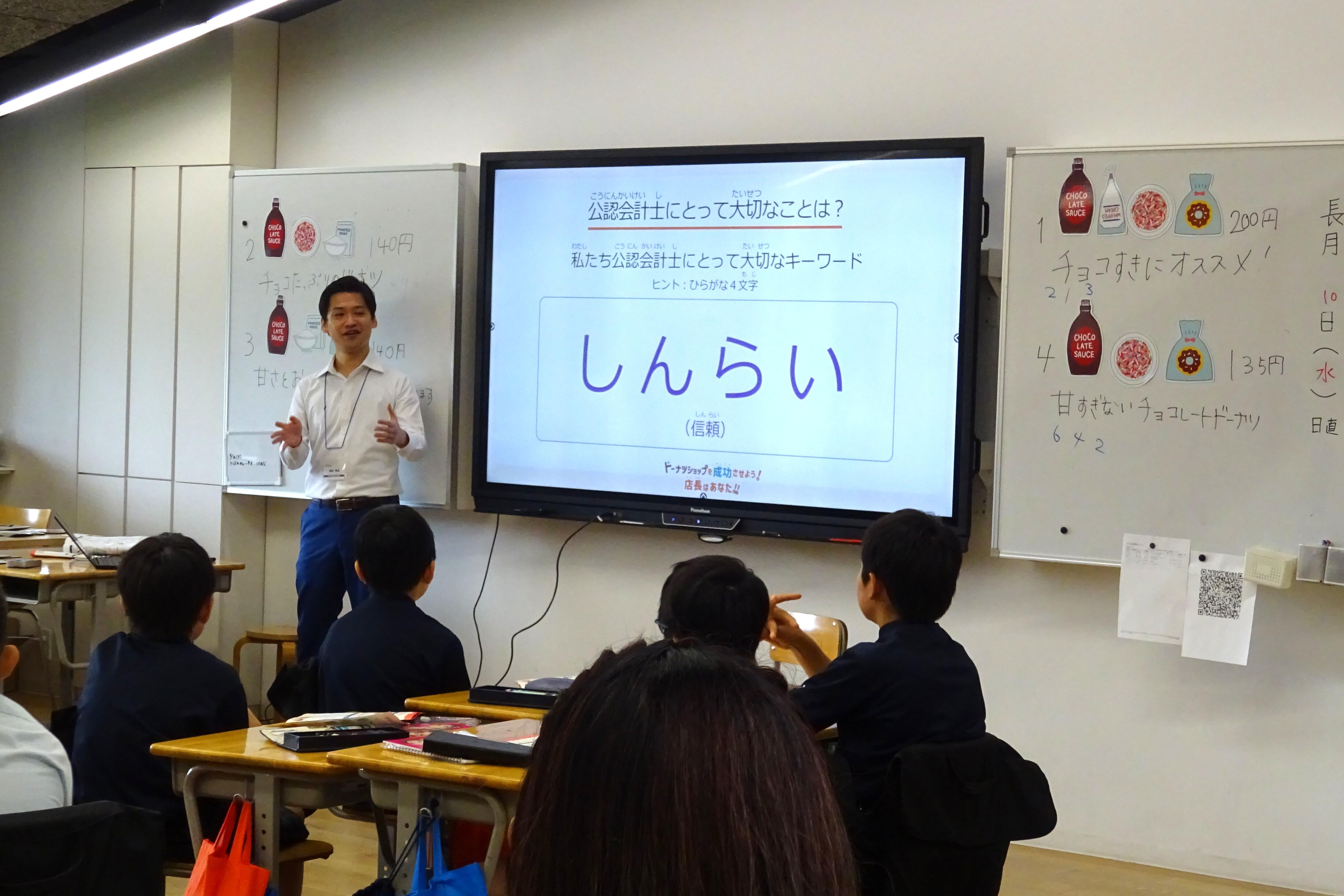 この度、JICPAは小学校2校でのキャリア教育イベント※に出講し、公認会計士が講師となって子どもたちに授業を行いました。