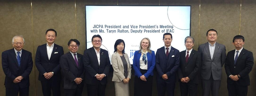 2025年10月20日(月)に国際会計士連盟(IFAC)副会長 Taryn Rulton 氏、CEO Lee White 氏、事務局 Harpal Singh 氏、アジア・太平洋会計士連盟(CAPA) CE Jennifer Lopez 氏が日本公認会計士協会(JICPA)に来会され、南 成人会長、佐藤 久史 専務理事、觀 恒平 IFACボードメンバーとの間で、監査及び職業の魅力向上をはじめとする共通の取組や課題等について意見交換を行いました。